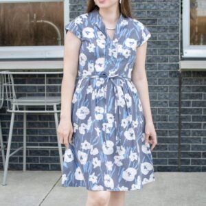 • Retro Dresses -Floral Charcoal Organic Cotton